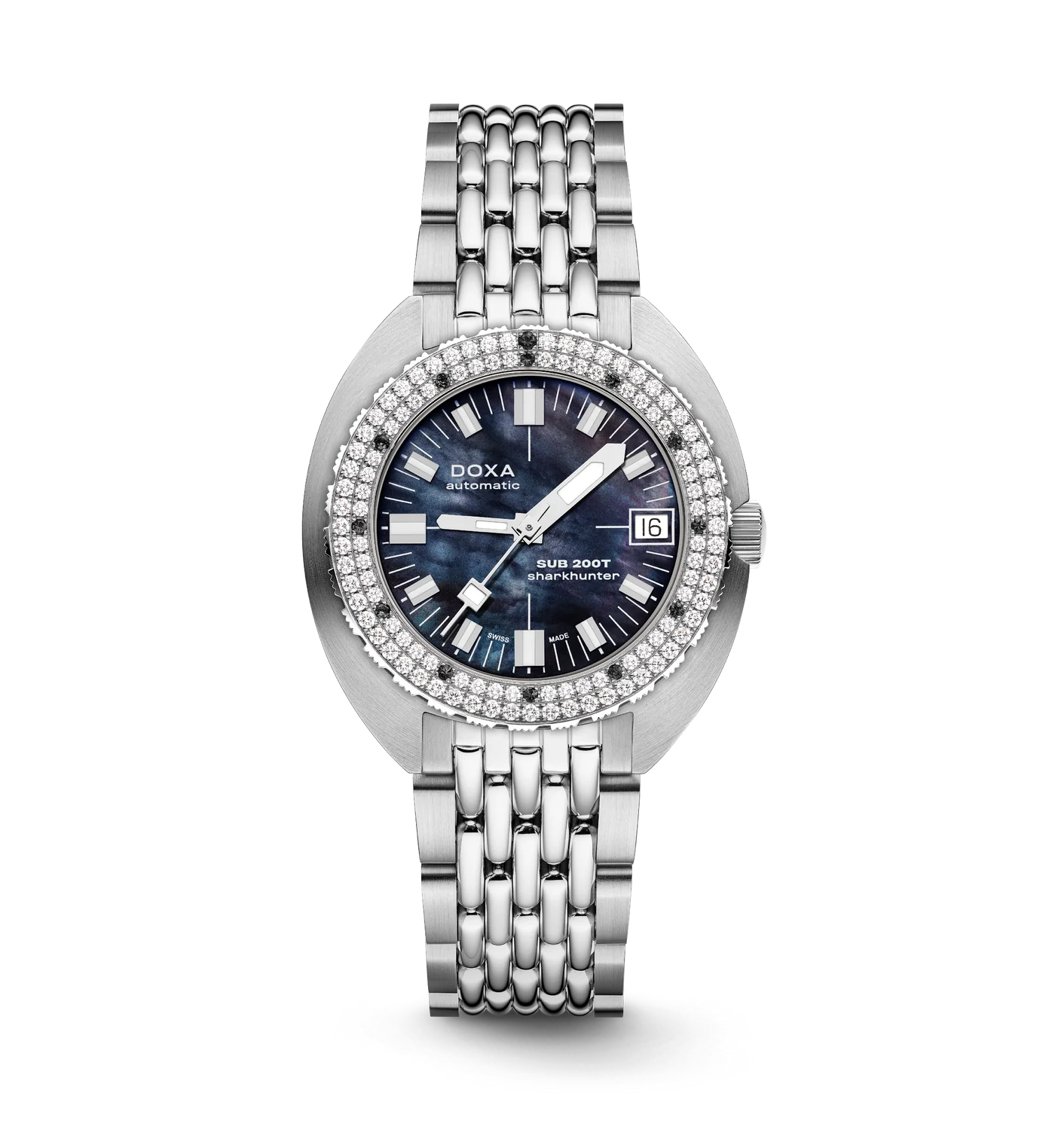 Designed with a refined 39mm case and 10.70mm thickness for comfort, the watch features a 316L stainless steel construction, Swiss automatic movement, 38-hour power reserve, and elements like a date window, unidirectional rotating bezel, and screw-down crown. It’s water-resistant to 200 meters, with a scratch-resistant sapphire crystal and Super-LumiNova® coating for optimal readability. The enhanced dial with applied hour markers adds a touch of sophistication, highlighted by the sparkle of the mother-of-pearl dial.